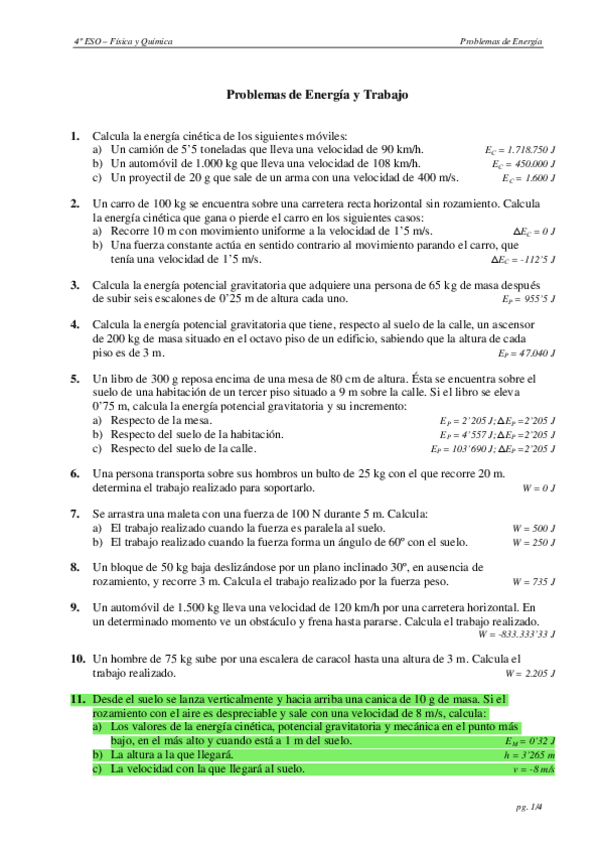 He publicado nuevos ejercicios de 4º Física y Química: ejercicios repaso energía y trabajo