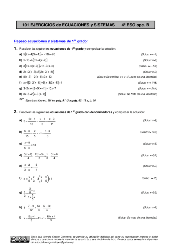 He publicado nuevos ejercicios de 4º Matemáticas a: ECUACIONES.INECUACIONES Y SISTEMAS