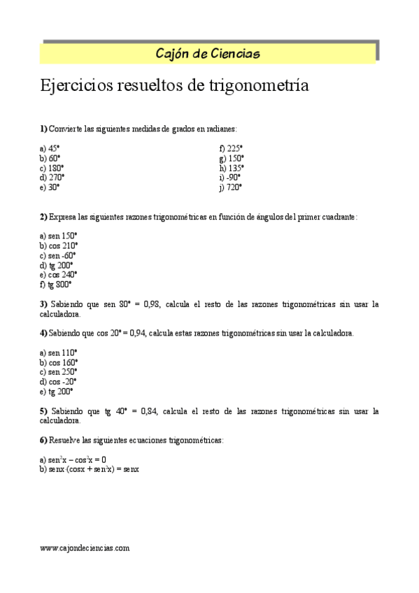 He publicado nuevos ejercicios de 4º Matemáticas a: TRIGONOMETRÍA