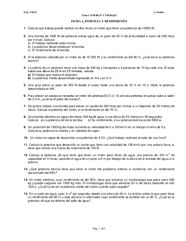 He publicado nuevos ejercicios de 4º Física y Química: ejercicios repaso energía y trabajo