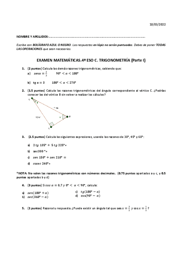 He publicado nuevos ejercicios de 4º Matemáticas a: TRIGONOMETRÍA