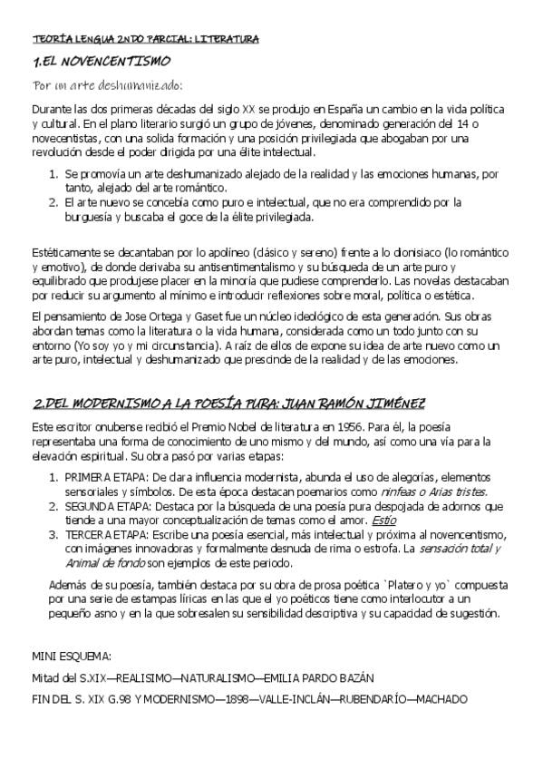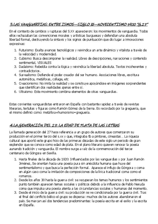 Apuntes muy útiles si tienes examen relacionado con la generación del 14 o novecentistas; Juan Ramón Jiménez; Las vanguardias y el modernismo; La generación del 27; Federico García Lorca; Miguel Hernández; Recursos literarios