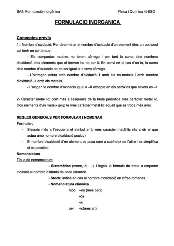 Formulació Inorgànica per a 3r i 4t d'ESO, apunts en català