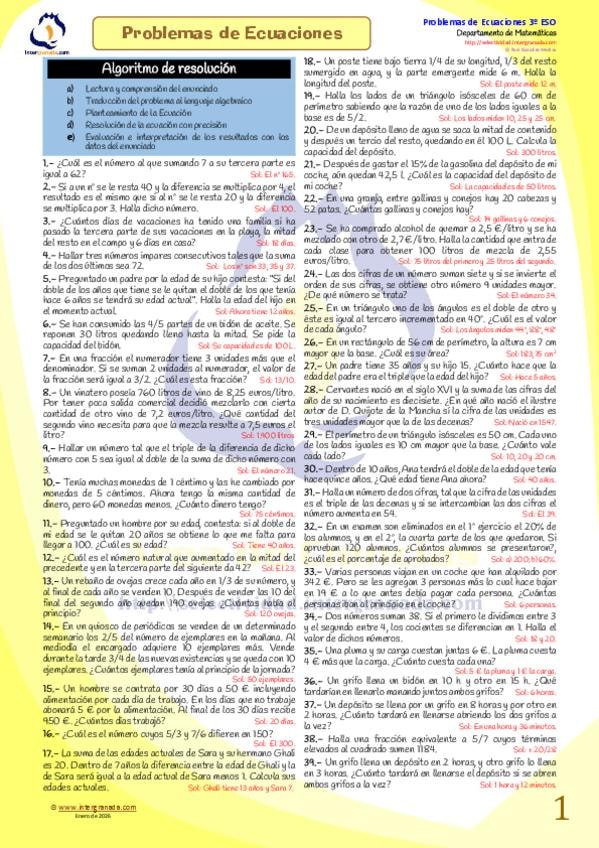 He publicado nuevos ejercicios de 3º Matemáticas: Problemas-de-ecuaciones-CON-SOLUCIONES.pdf