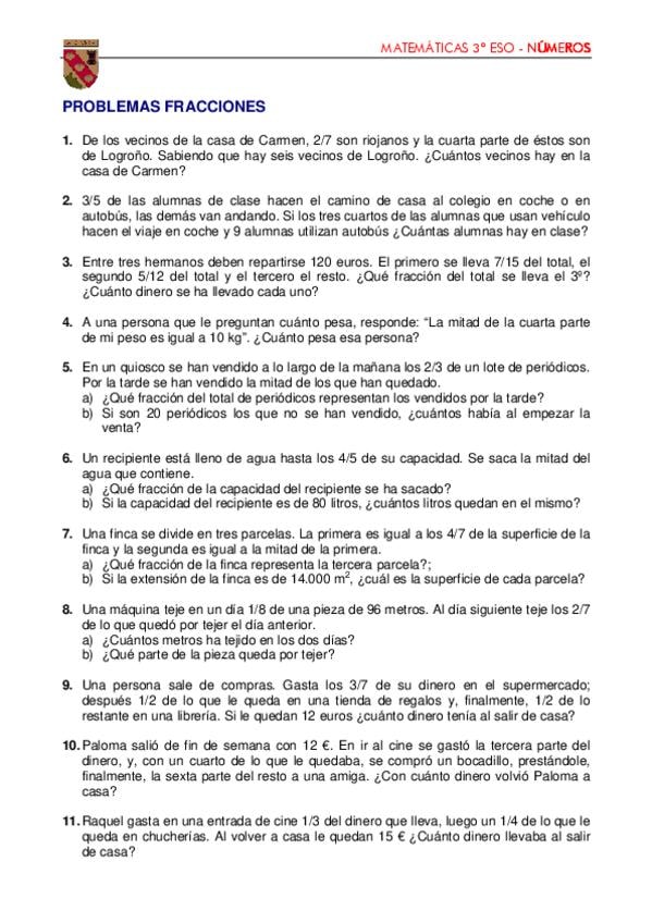 He publicado nuevos ejercicios de 3º Matemáticas: Problemas-de-fracciones.pdf