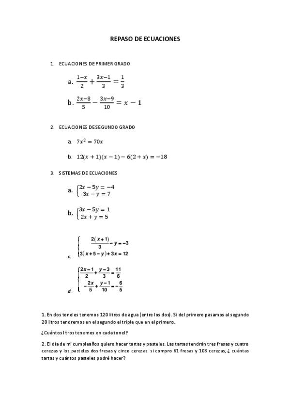 He publicado nuevos ejercicios de 3º Matemáticas: Ejercicios-ecuaciones-y-sistemas.pdf