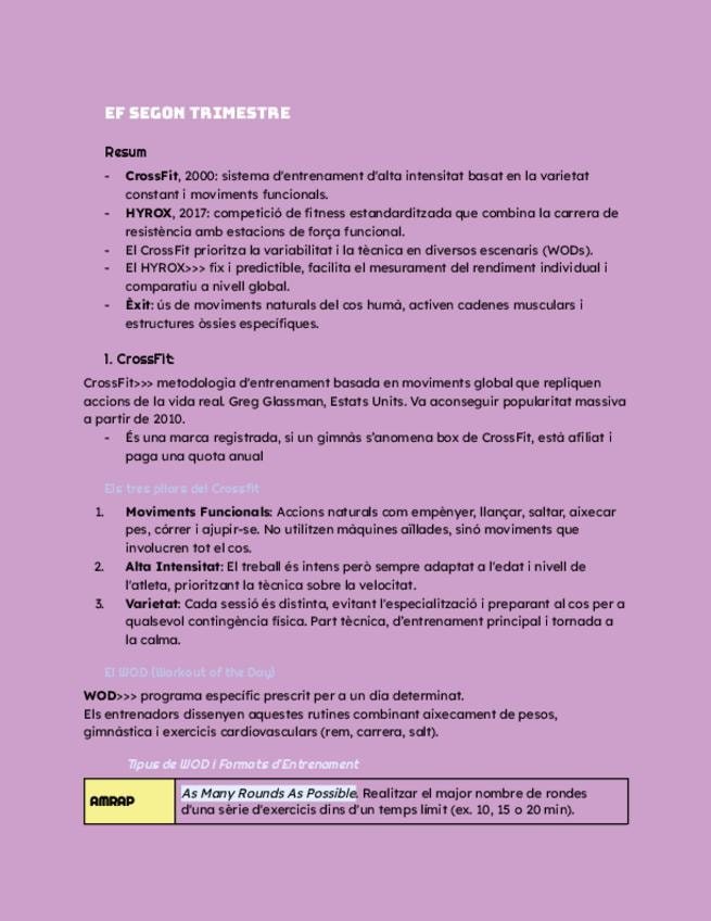 Resumen del segundo trimestre de E.F., incluye: teoria del CrossFit, teoria del Hyrox