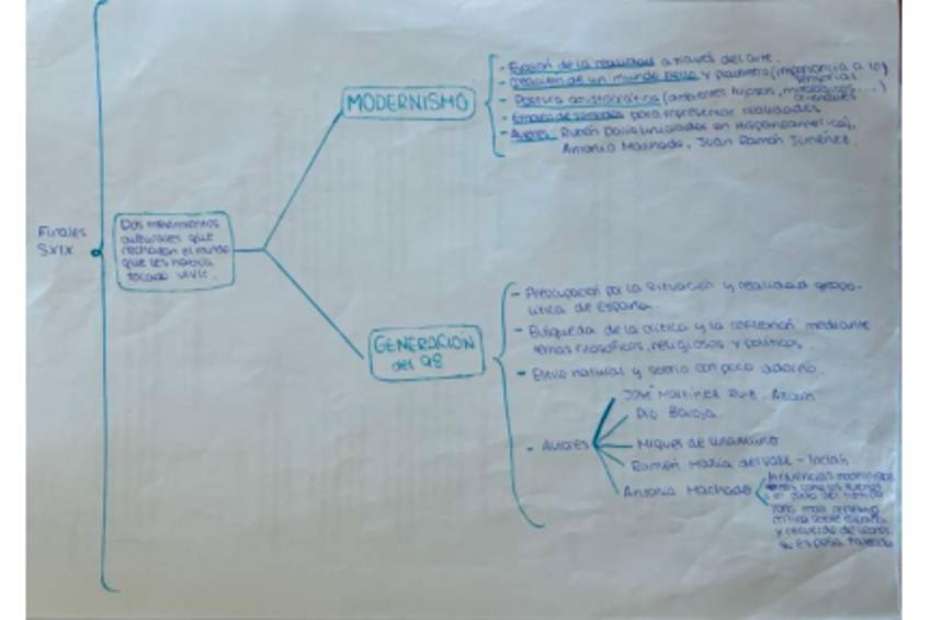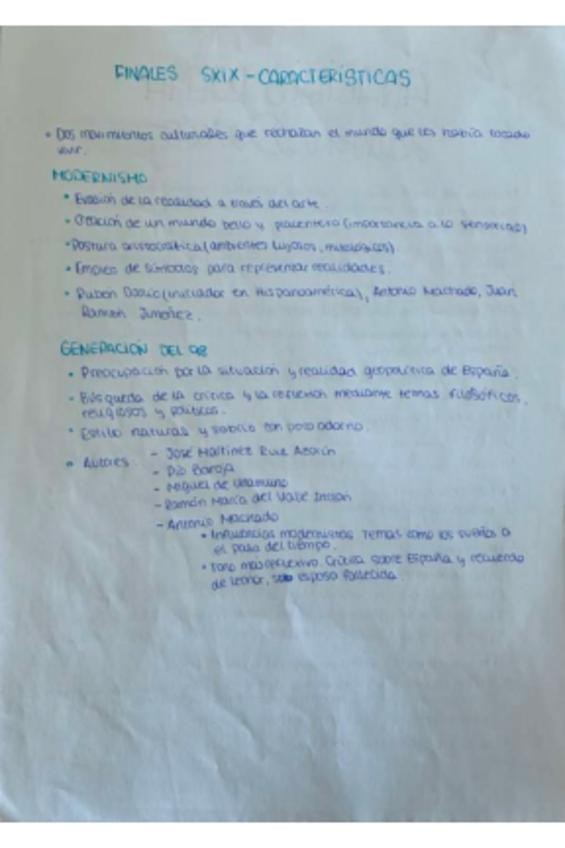 Apuntes de literatura de finales del siglo XIX y principios del siglo XX, incluye el modernismo, la generación del 98, el novecentismo y la generación del 14, las vanguardias y la generación del 27. Incluye poemas con actividades ya resueltos, tipo examen