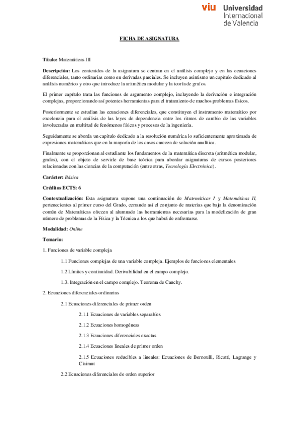 Asignaturas de Grado en Ingeniería en Organización Industrial (VIU)