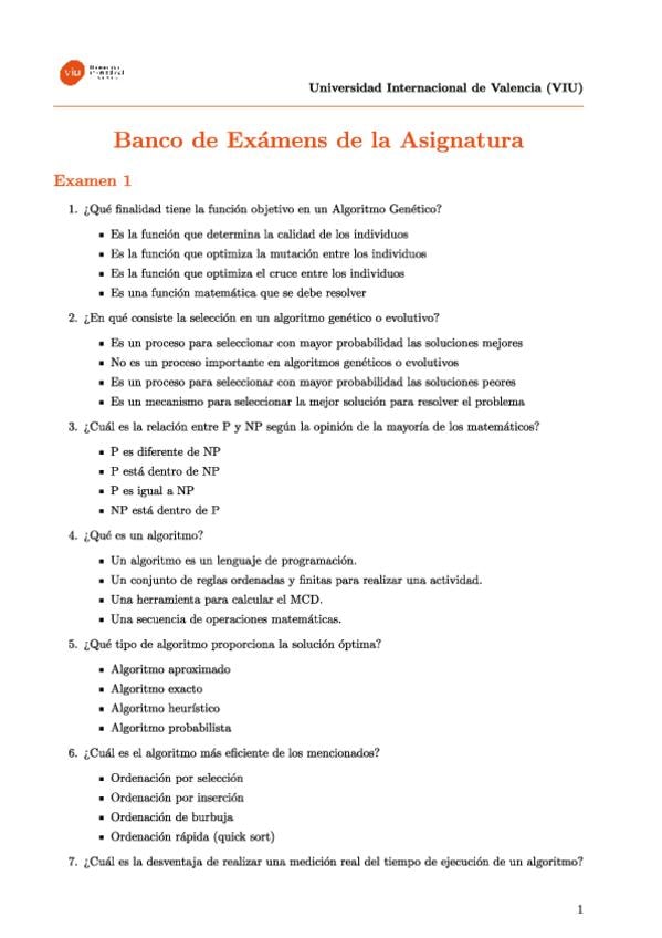 Banco de Exámenes de la Asignatura Algoritmos de Optimización