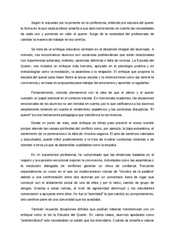 Trabajo individual sobre la escuela del querer. Nota 8,75