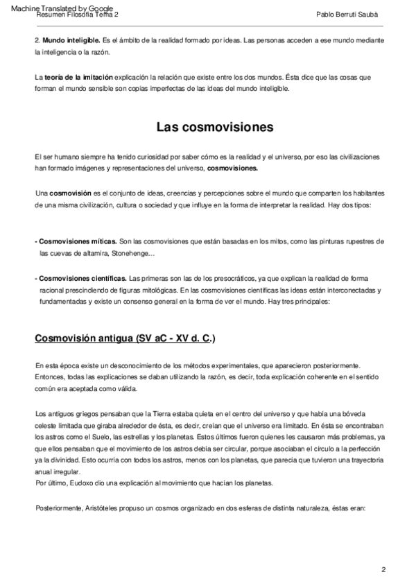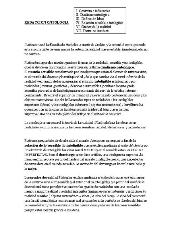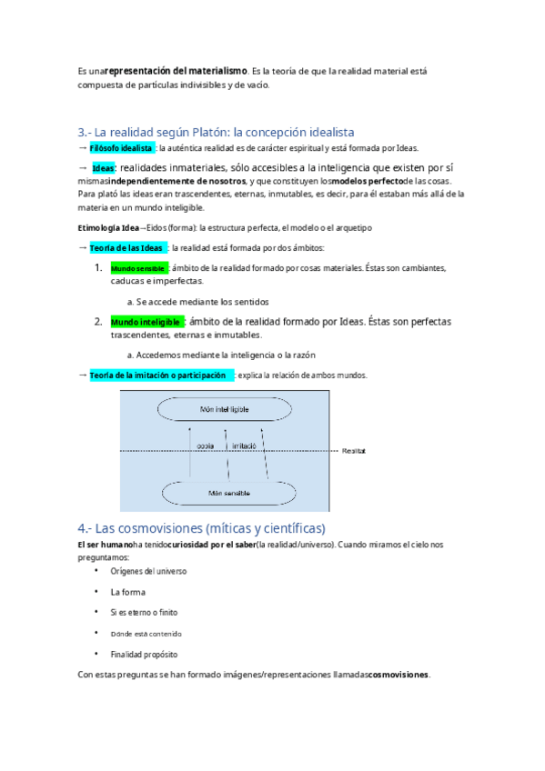 Tema de la metafísica, la realidad y las diferentes cosmovisiones a lo largo de la historia, de forma esquematizada