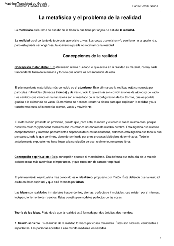 Resumen redactado sobre la metafísica, la realidad y las distintas cosmovisiones de cada época