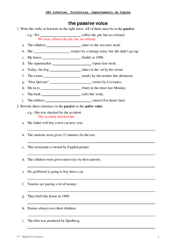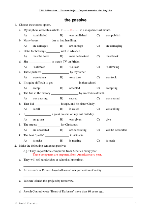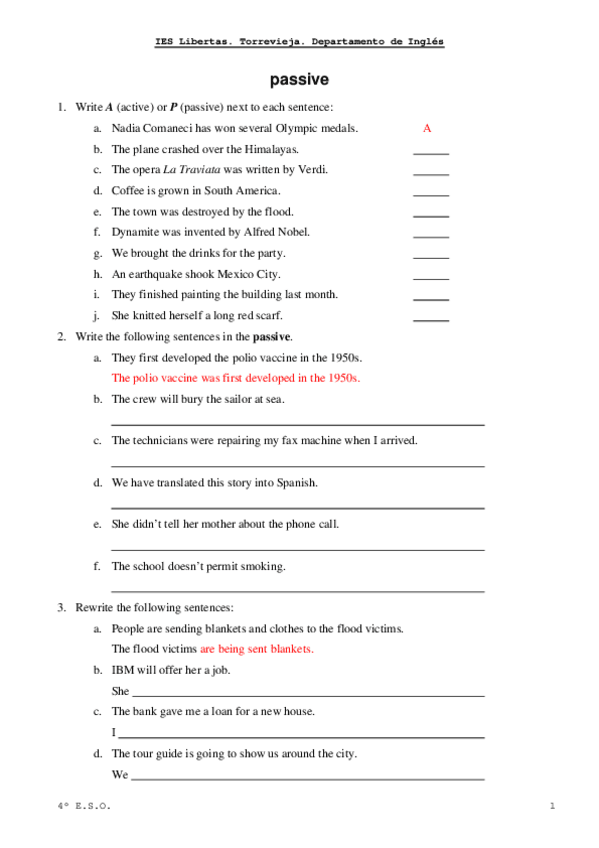 He publicado nuevos ejercicios de 4º Inglés: La pasiva en inglés